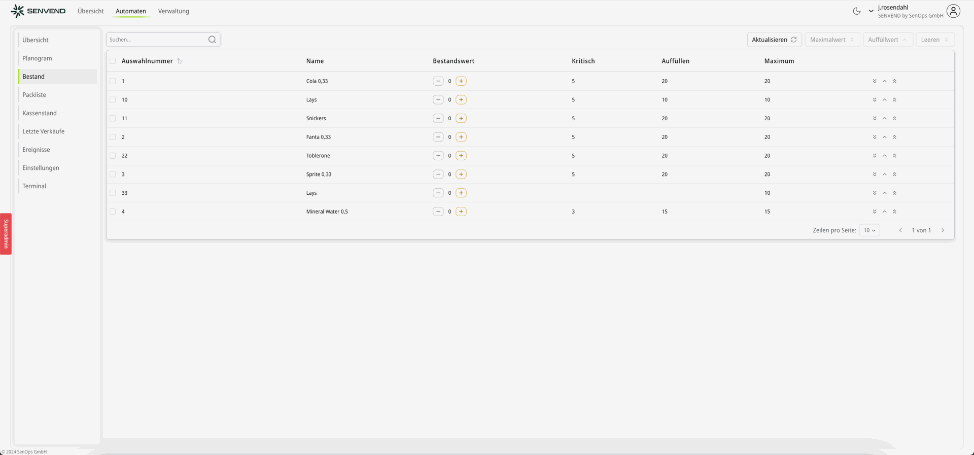 ➡️ hier kannst du den Warenbestand deines Automaten in Echtzeit checken und die Bestandswerte ggf. korrigieren.